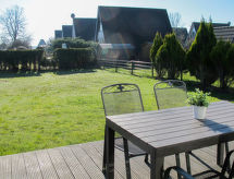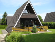 Maison 4 pièces 78 m2 sur 2 niveaux. Aménagement plaisant et avec beaucoup de bois: séjour/salle à manger avec TV (satellite) et radio. Sortie sur la terrasse. 1 chambre avec 2 couchages. Cuisine (4 plaques de cuisson, grille-pain, bouilloire électrique, cafetière électrique). Douche/WC. À l'étage supérieur: 1 chambre, mansardée avec 1 lit double. 1 chambre, mansardée avec 2 lits. Pelouse. Meubles de terrasse, réduit. A disposition: chaise haute pour enfant, lit bébé. Veuillez noter: maximum 1 animal/ chien autorisé. Détecteur de fumée.- Installations