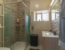 "Felicidade", maison mitoyenne 4 pièces 71 m2 sur 2 niveaux. Rénovée en 2020, aménagement confortable et plaisant: séjour/salle à manger avec table pour les repas, TV, chaînes de TV internationales, écran plat, air-conditionné et chauffage à air chaud. 1 chambre avec 1 grand-lit (160 cm, longueur 200 cm), air-conditionné et chauffage à air chaud. 1 chambre avec 2 lits (90 cm, longueur 190 cm), air-conditionné et chauffage à air chaud. Cuisine (four, 4 plaques vitrocéramiques, grille-pain, four micro-ondes, congélateur, cafetière électrique). Douche/WC. À l'étage supérieur: 1 chambre avec 1 grand-lit (140 cm, longueur 190 cm), douche/WC, air-conditionné et chauffage à air chaud. Sortie sur la terrasse. Tonnelle. Meubles de terrasse, barbecue. A disposition: lave-linge, chaise haute pour enfant, lit bébé jusqu'à 2 ans. Internet (Connexion WIFI). Veuillez noter: adapté(e) aux familles. Extincteur. 109277/AL- Installations