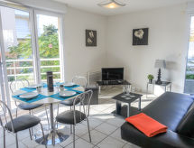 Apt 2 pièces 45 m2 au 1er étage. Clair, aménagement fonctionnel: séjour/salle à manger avec 1 divan-lit double (140 cm, longueur 190 cm), TV et DVD. Sortie sur la terrasse. 1 chambre avec 2 lits (90 cm). Sortie sur le balcon. Cuisine (four, lave-vaisselle, 4 plaques vitrocéramiques, grille-pain, bouilloire électrique, four micro-ondes, cafetière électrique). Salle de bains, WC séparé. Chauffage électrique. Terrasse 8 m2, situation ouest. Meubles de terrasse. A disposition: lave-linge. Internet (Connexion WIFI, en sus). Place de parking No 22 (couvert, 1 Voiture). Veuillez noter: logement non-fumeur. 06027016412HT- Caractéristiques de l'hébergement