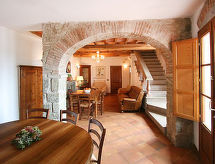 Maison de maître individuelle "Panzalla", environnée par les champs et vignobles. 6 appartements dans la résidence. Location composée d'un bâtiment principal et d'une annexe, à 4 km du centre de San Polo in Chianti, à 16 km du centre d'Impruneta, à 23 km du centre de Firenze, situation isolée, ensoleillée, surélevée, dans la verdure. En commun: terrain à l'état naturel, jardin sur plusieurs niveaux avec fleurs et arbres, champ, piscine cloturée (10 x 5 m, profondeur 150 cm, disponibilité saisonnière: 06.Mai. - 07.Oct.). Douche extérieure, terrasse, meubles de jardin, barbecue, entretien de la piscine par le propriétaire/jardinier. Infrastructures de la Maison: réception, restaurant, accès internet, Connexion WIFI, lave-linge (en commun). Accès en voiture par un chemin difficile de 2 km de long (chemin non goudronné). Place de parking sur le terrain. Supermarché 4 km, restaurant 4 km, boulangerie 4 km, arrêt de bus "San Polo in Chianti" 4 km. Terrain de golf 13 km. Attractions à proximité: Greve in Chianti 20 km, Radda in Chianti 38 km, San Gimignano 58 m, Siena 75 m, Arezzo 65 m. Veuillez noter: voiture recommandée. Adapté(e) aux familles, équipement pour bébés (inclus). Possibilité de réserver des cours de cuisine. Vente locale de produits de la ferme. Le propriétaire habite sur le même terrain. Le propriétaire a un chien. Toutes les maisons/appartements sont aménagés individuellement.Interior