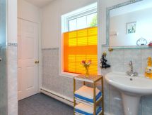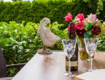 "Flaschenpost", apt 3 pièces 55 m2, au rez-de-chaussée. Aménagement confortable et de style: séjour/salle à manger avec poêle suédois, table pour les repas, TV (satellite), radio et lecteur CD. Sortie sur la terrasse. 1 chambre avec 1 lit double. 1 chambre avec 1 lit et 1 lit gigogne. Cuisine ouverte (lave-vaisselle, 4 plaques vitrocéramiques, grille-pain, bouilloire électrique, four micro-ondes, cafetière électrique). Douche/WC. Chauffage au gaz. Terrasse couverte. Meubles de terrasse. A disposition: Internet (Connexion WIFI, gratuit). Place de parking (1 Voiture). Veuillez noter: logement non-fumeur. Détecteur de fumée. Les chambres sont hypoallergéniques et sont aménagées avec du mobilier de haute qualité. Degré de dureté individuel des matelas possible.- Installations