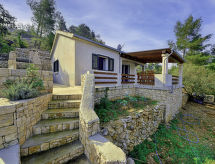 Maison 3 pièces 55 m2, situation nord. 1 chambre avec 1 grand-lit (160 cm, longueur 200 cm), douche/WC. 1 chambre avec 2 lits (90 cm, longueur 190 cm). 1 chambre avec 1 lit double (2 x 90 cm, longueur 200 cm). Cuisine ouverte (2 plaques de cuisson, congélateur) avec table pour les repas, TV (satellite) (écran plat). Sortie sur la terrasse. Douche/WC. Terrasse 20 m2, couverte. Meubles de terrasse. Superbe vue sur la mer. 1 animal/ chien autorisé. Eau chaude uniquement par énergie solaire. Eau (citerne).- Installations