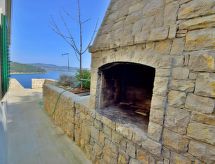 Uvala Pičena à 5 km de Vela Luka: Maison individuelle "Flora". Situation tranquille, ensoleillée, à 35 m de la mer, à 35 m de la plage. A usage privé: terrain 480 m2, jardin 100 m2 avec plantes. Douche extérieure, terrasse (10 m2), barbecue, place de parking (pour 2 voitures) à 30 m. Magasins 3.5 km, restaurant 4 km, arrêt du bus 4 km, ferry 4 km, plage de graviers 100 m, plage de rochers, plage bétonnée 35 m. Veuillez noter: place d'amarrage privée, sur demande.Interior