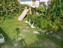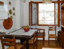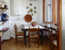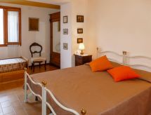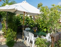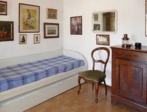 "Francesca", apt 3 pièces 65 m2, au rez-de-chaussée. Aménagement fonctionnel et rustique: séjour/chambre à coucher avec 1 divan-lit double (140 cm), TV (satellite). Chambre avec passage avec 1 lit gigogne (2 x 80 cm). 1 chambre avec 1 lit (80 cm), 1 lit double (160 cm). Cuisine ouverte (four, 4 feux, grille-pain, four micro-ondes, congélateur, cafetière électrique) avec table pour les repas. Douche/WC. Chauffage au gaz. Possibilité de chauffage uniquement du 30.10. au 30.04. Terrasse, jardinet. Meubles de terrasse, barbecue (portable), chaises longues (2). Vue partielle sur le cité. A disposition: chaise haute pour enfant, lit bébé. Internet (Connexion WIFI, gratuit). Place de parking (cloturée, 1 Voiture) à 30 m. Veuillez noter: entrée privée. CITRA: 008055-LT-0242- Installations
