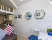 2 pièces cottage sur 2 niveaux. Spacieux et clair, aménagement confortable et de bon goût: séjour ouvert avec 1 divan-lit double, TV, écran plat et DVD. Cuisine ouverte (4 plaques de cuisson, four, four micro-ondes, congélateur) avec table pour les repas. Bain/douche/WC. Chauffage. À l'étage supérieur: 1 chambre double avec 1 lit double. Chauffage. Meubles de terrasse. Belle vue sur la mer. A disposition: Internet (Connexion WIFI, gratuit). Veuillez noter: maison non-fumeur.- Caractéristiques de l'hébergement