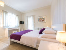 Maison 6 pièces 550 m2 sur 2 niveaux, situation sud. Séjour/salle à manger 47 m2 avec TV (satellite) (écran plat), air-conditionné. Sortie sur la terrasse. 1 chambre avec 1 grand-lit (160 cm, longueur 200 cm), douche/WC et TV (satellite) (écran plat). Sortie sur la terrasse. 1 chambre avec 1 grand-lit (140 cm, longueur 200 cm), douche/WC. Cuisine ouverte (4 plaques de cuisson, four, lave-vaisselle, four micro-ondes, congélateur, cafetière électrique). WC séparé. À l'étage supérieur: séjour/salle à manger 67 m2 avec TV (satellite) (écran plat), air-conditionné. Sortie sur la terrasse. 1 chambre avec 1 grand-lit (140 cm, longueur 200 cm). Sortie sur la terrasse. 1 chambre avec 1 grand-lit (160 cm, longueur 200 cm), bain/douche/WC, double vasque et TV (satellite) (écran plat). Sortie sur la terrasse. Cuisine ouverte (4 plaques de cuisson, four, lave-vaisselle, four micro-ondes, congélateur, cafetière électrique). Douche/WC. Terrasse 15 m2, couverte, 2 terrasses 27 m2, couverte. Meubles de terrasse, barbecue (portable), chaises longues (6). Belle vue éloignée sur la mer. A disposition: coffre-fort, chaise haute pour enfant, lit bébé, sèche-cheveux. Internet (Connexion WIFI, gratuit). Garage (2 Voitures). Veuillez noter: maison non-fumeur.- Caractéristiques de l'hébergement