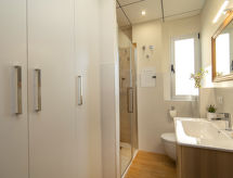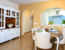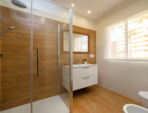 "Frentemar 01", apt 5 pièces 143 m2 au 1er étage. Spacieux et clair, complètement rénové en 2020, aménagement confortable et agréable: séjour/salle à manger avec TV (satellite), Télévision numérique, air-conditionné et chauffage à air chaud. Sortie sur la terrasse. 1 chambre avec 1 grand-lit (1 x 150 cm, longueur 190 cm), douche/WC, air-conditionné et chauffage à air chaud. 1 chambre avec 1 grand-lit (135 cm, longueur 190 cm), douche/WC, air-conditionné et chauffage à air chaud. 1 chambre avec 1 grand-lit (135 cm, longueur 190 cm), air-conditionné et chauffage à air chaud. 1 chambre avec 1 lit (90 cm, longueur 190 cm), air-conditionné et chauffage à air chaud. Cuisine ouverte (lave-vaisselle, 4 plaques vitrocéramiques, grille-pain, bouilloire électrique, four micro-ondes, congélateur, cafetière électrique). Douche/WC. Petite terrasse. Meubles de terrasse, place pour s'asseoir. Vue latérale sur la mer. A disposition: lave-linge, fer à repasser, chaise haute pour enfant, lit bébé jusqu'à 2 ans, sèche-cheveux. Internet (Connexion WIFI, gratuit). Adapté(e) aux familles. La piscine mentionnée dans le descriptif est privative. VT-487183-A- Installations