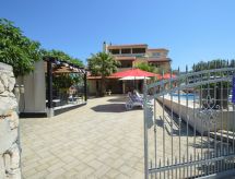 Tribunj à 3 km de Vodice: Bel immeuble "Friedrich". Dans le hameau de Sovlje, à 1.5 km du centre de Tribunj, situation tranquille, ensoleillée, à 250 m de la mer, à 300 m de la plage. En commun: jardin entretenu (clôturé), piscine (24 m2, profondeur 150 cm, disponibilité saisonnière: 15.Mai. - 15.Oct.) avec marches intérieures. Douche extérieure, tonnelle, meubles de jardin, espace de jeux pour les enfants. Infrastructures de la Maison: accès internet, lave-linge (en commun, en sus). Place de parking près de la maison. Magasins 1.3 km, restaurant 350 m, plage de graviers 400 m, plage de rochers 300 m, plage bétonnée 400 m. En commun : transats et parasols. Stationnement pour remorque disponible.Interior
