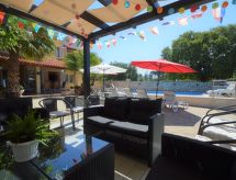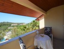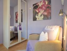 Studio 24 m2 au 1er étage, situation sud. Aménagement agréable et plaisant: séjour/chambre à coucher avec 1 grand-lit (160 cm, longueur 200 cm), TV (satellite) (écran plat), air-conditionné. Sortie sur le balcon. Cuisine ouverte (lave-vaisselle, 4 plaques vitrocéramiques, bouilloire électrique, four micro-ondes, congélateur, cafetière électrique) avec table pour les repas. Douche/bidet/WC. Balcon 5 m2, balcon 4 m2. Mobilier de balcon. Vue sur la piscine. A disposition: Internet (Connexion WIFI, gratuit).- Installations
