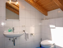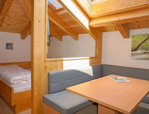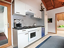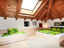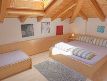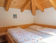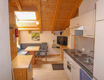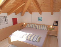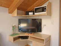 Apt 3 pièces 46 m2. Aménagement plaisant et avec beaucoup de bois: sous le toit: (escalier extérieur) 1 chambre avec 1 lit et 1 lit double. 1 chambre, fenêtre donnant sur le séjour avec 1 lit et 1 lit double. Petit séjour avec coin repas et TV (satellite) (écran plat). Cuisine ouverte (4 plaques de cuisson, four, lave-vaisselle, cafetière électrique). Sortie sur la terrasse. Douche/WC. Terrasse. Vue sur la localité. A disposition: sèche-cheveux. Internet (Connexion WIFI, gratuit). Veuillez noter: maison non-fumeur. Entrée privée.- Installations