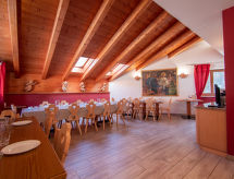 Belle, grande résidence hôtelière "Garni Eden", 1'210 m au dessus du niveau de la mer. Dans la localité Soraga di Fassa, à 3.7 km du centre de Moena di Fassa, à 42 km du centre de Bolzano, situation centrale, animée, à 3.4 km des pistes de ski. Infrastructures de la Maison: restaurant, sauna, bains de vapeur (hammam) (tout en sus), ascenseur, réduit pour bicyclettes, local pour les skis. Place de parking (pour 10 voitures) près de la maison sur le terrain. Magasin d'alimentation 150 m, supermarché 3.4 km, arrêt du bus 250 m, centre thermal "Wellness" 5.3 km. Terrain de golf (9 trous) 13.7 km, téléski 3.4 km, télécabine 3.4 km. Arrêt du ski-bus 250 m, ski de fond 5 m. Attractions à proximité: Canazei (Sella Ronda) 15 km. Les domaines skiables de renommée sont facilement accessibles: Pozza di Fassa/Buffaure (Sella Ronda) 3.4 km, Moena/Alpe Lusia 4.7 km, Predazzo/SkiCenter Latemar 10.4 km. Veuillez noter: le propriétaire habite dans la même maison.Interior