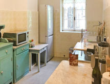 Maison individuelle ancienne "Gemma", du 19ème siècle. Dans le hameau de Pieve, situation ensoleillée, zone avec peu de trafic, à 300 m du lac. A usage privé: terrain avec arbres. Sentier en escalier (38 marches) jusqu'à la maison. Parking public 50 m. Supermarché, restaurant, bar 400 m, location de bicyclettes 500 m, plage de galets 400 m. Piste cyclable 500 m. Les lacs connus sont facilement accessibles: Garda 17 km, Idro 26 km. Veuillez noter: voiture recommandée. La remise des clés a lieu à l’agence Ledro de Molina, 6 km.Interior