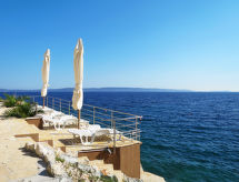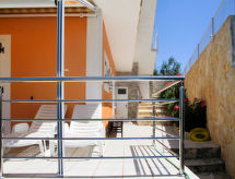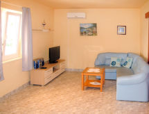 Apt 3 pièces 75 m2, au rez-de-chaussée. Séjour/salle à manger avec 1 divan-lit et TV (satellite) (écran plat), air-conditionné. Sortie sur la terrasse. 2 chambres, chaque chambre avec: 1 grand-lit. Cuisine ouverte (2 plaques de cuisson, four, congélateur, cafetière électrique). Douche/WC. Terrasse 30 m2. Meubles de terrasse, chaises longues (2). Vue sur la mer. A disposition: Internet (Connexion WIFI, gratuit). Place de parking (1 Voiture) près de la maison. Veuillez noter: logement non-fumeur. Maximum 1 animal/ chien autorisé. Entrée privée.- Installations