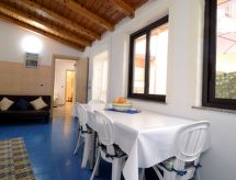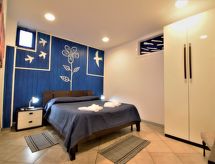 "Gioia di Mare", apt 3 pièces 120 m2, au rez-de-chaussée. Aménagement confortable et de bon goût: entrée. Séjour. 2 chambres doubles, chaque chambre avec: TV (écran plat), air-conditionné et chauffage à air chaud. Cuisine (4 plaques de cuisson, four, grille-pain, four micro-ondes, congélateur) avec table pour les repas. Sortie sur la terrasse. 2 douches/bidet/WC. Air-conditionné, chauffage à air chaud. Possibilité de chauffage uniquement du 01.12. au 31.03, Chauffage pas dans toutes les pièces. Terrasse 20 m2 partiellement couverte. Meubles de terrasse. A disposition: lave-linge, fer à repasser, moustiquaire, chaise haute pour enfant, lit bébé jusqu'à 2 ans, sèche-cheveux. Internet (Connexion WIFI, gratuit).- Installations