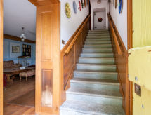 Maison 7 pièces 200 m2 sur 2 niveaux. Aménagement rustique et plaisant: séjour avec cheminée et TV. Cuisine (four, lave-vaisselle, 5 feux, grille-pain, congélateur, cafetière électrique) avec table pour les repas. Sortie sur le jardin. Douche/WC. À l'étage supérieur: séjour. 1 chambre avec 1 grand-lit (160 cm), cheminée. 1 chambre avec 1 grand-lit (160 cm). 2 chambres, chaque chambre avec: 2 lits. 1 chambre avec 2 lits et 1 x 2 lits superposés. Bain/WC, douche/WC. Chauffage au bois (en sus). Sol en parquet. Réduit. A disposition: lave-linge, chaise haute pour enfant, lit bébé. Internet (Connexion WIFI, gratuit). Veuillez noter: maison non-fumeur. Maximum 1 animal/ chien autorisé. Pas de frais supplémentaires obligatoires à régler sur place. Linge de maison, serviette de bain, ménage final et coûts énergétiques inclus.- Caractéristiques de l'hébergement