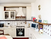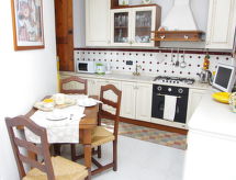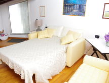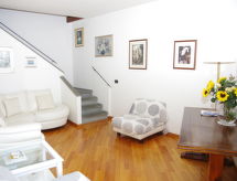 "Gli Artisti", apt 3 pièces 95 m2 sur 2 niveaux au 2ème étage. Rénové en 2017, aménagement confortable et plaisant: entrée. Salon avec air-conditionné. Cuisine (4 plaques de cuisson, four, lave-vaisselle, four micro-ondes) avec TV. À l'étage supérieur: 1 chambre double, mansardée avec air-conditionné. Séjour mansardé avec 1 divan-lit double, TV et air-conditionné. Sortie sur la terrasse. Bain/bidet/WC. Chauffage (en sus), air-conditionné (en sus). Possibilité de chauffage uniquement du 01.11. au 15.04. Terrasse. Meubles de terrasse. A disposition: lave-linge, moustiquaire, chaise haute pour enfant, lit bébé, sèche-cheveux. Internet (Connexion WIFI, gratuit). Adapté(e) aux familles.- Installations