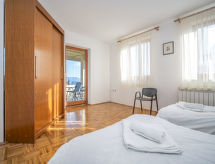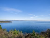 Apt 2 pièces 75 m2 au 1er étage. Séjour/chambre à coucher avec 2 lits (80 cm, longueur 200 cm), TV (satellite) (écran plat). Sortie sur la terrasse. 1 chambre avec 1 grand-lit (160 cm, longueur 200 cm). Sortie sur le balcon. Cuisine ouverte (4 plaques de cuisson, four, cafetière électrique) avec table pour les repas. Douche/WC. Chauffage (en sus). Balcon 3 m2, terrasse 10 m2, couverte. Meubles de terrasse. Vue panoramique sur la mer. A disposition: Internet (Connexion WIFI, gratuit).- Installations