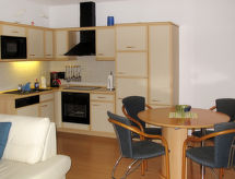 "Haus Berlin", apt 2 pièces 50 m2, au rez-de-chaussée. Aménagement confortable et plaisant: séjour/chambre à coucher avec 1 divan-lit double, table pour les repas, TV (satellite), radio et lecteur CD. Sortie sur la terrasse. 1 chambre double. Coin cuisine (four, lave-vaisselle, 4 plaques vitrocéramiques, grille-pain, bouilloire électrique, four micro-ondes, cafetière électrique). Douche/WC. Chauffage au gaz. Terrasse. Meubles de terrasse, réduit. A disposition: chaise haute pour enfant, lit bébé. Internet (Connexion WIFI, gratuit). Place de parking (couvert, 1 Voiture). Veuillez noter: logement non-fumeur. 1 animal/ chien autorisé. Détecteur de fumée.- Installations