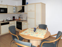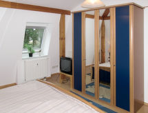 "Haus Berlin", apt 2 pièces 50 m2, à l'étage supérieur. Aménagement confortable et plaisant: séjour/chambre à coucher avec 1 divan-lit double, table pour les repas, TV (satellite), radio et lecteur CD. Sortie sur le balcon. 1 chambre double. Coin cuisine (four, lave-vaisselle, 4 plaques vitrocéramiques, grille-pain, bouilloire électrique, four micro-ondes, cafetière électrique). Douche/WC. Chauffage au gaz. Balcon. Mobilier de balcon, réduit. A disposition: chaise haute pour enfant, lit bébé. Internet (Connexion WIFI, gratuit). Place de parking (couvert, 1 Voiture). Veuillez noter: logement non-fumeur. 1 animal/ chien autorisé. Détecteur de fumée.- Installations