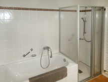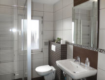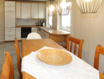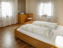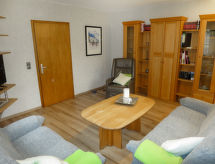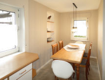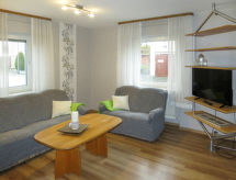 Maison 5 pièces 110 m2 sur 2 niveaux, au rez-de-chaussée. Séjour avec TV (satellite). 1 chambre avec 1 lit. Cuisine (four, lave-vaisselle, 4 plaques vitrocéramiques, bouilloire électrique, four micro-ondes, cafetière électrique) avec table pour les repas, radio. Bain/douche/WC. À l'étage supérieur: 2 chambres doubles. 1 chambre avec 1 lit. Douche/WC. Barbecue, place pour s'asseoir, réduit. A disposition: Internet (Connexion WIFI, gratuit). Veuillez noter: maison non-fumeur. 1 animal/ chien autorisé. Détecteur de fumée, extincteur. Le lit supplémentaire (non inclus) se trouve dans une autre chambre à l´étage.- Installations