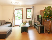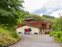 Petite résidence moderne "Haus Wildstein", environnée par les arbres et prés. Dans le quartier de Bad Wildstein, en bordure de la localité, à 4.5 km du centre de Traben-Trarbach, situation tranquille sur un versant, à 10 m de la forêt, à 3 m du ruisseau. En commun: parc 43'000 m2, grand jardin entretenu, jardin naturel 1 ha. Ping-pong, jardinet, espace barbecue, espace de jeux pour les enfants (balançoire). Infrastructures de la Maison: ascenseur, terrasse ensoleillée, chauffage central. Change de linge 1 fois par semaine. Changementde linge de toilette 1 fois par semaine. Place de parking près de la maison. Magasins 4 km, magasin d'alimentation 4 km, supermarché 4 km, centre commercial 5 km, restaurant 2.8 km, bar 4.5 km, boulangerie 1.3 km, café 2.8 km, location de bicyclettes 6 km, arrêt de bus "Traben-Trarbach" 2.5 km, gare ferroviaire "Traben-Trarbach" 4.5 km, piscine 1 km, piscine couverte 1 km, centre thermal 1 km. Terrain de golf (11 trous) 12 km, tennis 1 km, golf miniature 600 m, centre équestre 10 km, chemins de randonnées pédestres depuis la maison 50 m. Jeux pour enfants 2.7 km. Attractions à proximité: Weinregion Mosel, Nationalpark Saar-Hunsrück. Les domaines skiables de renommée sont facilement accessibles: Erbeskopf 21 km. Les lacs connus sont facilement accessibles: Pulvermaar 25 km. Veuillez noter: voiture recommandée. La maison de vacances se trouve dans la magnifique vallée de Kautenbach, tout près des thermes de Mosel. Située dans un cadre idyllique et calme, cette maison de vacances vous fera oublier votre stress quotidien: profitez donc des vergers, du ruisseau qui s'écoule dans le jardin, des nombreuses randonnées alentours, ainsi que du barbecue pour vous reposer. Vous trouverez près du ruisseau une station pour baigner vos pieds. La terrasse commune (roof-top) de 200m² est accessible par un escalier en colimaçon, ou bien par un ascenseur. Le barbecue (également partagé) se trouve sous un grand châtaignier (grillade au feu de camp (bois en supplément) ou bien au grill à gaz). Les appartements sont accessibles à tous.Interior