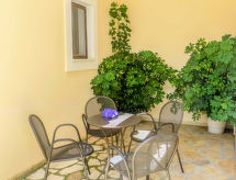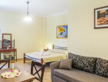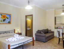 "Hermes" studio 26 m2, au rez-de-chaussée. Aménagement confortable et agréable: séjour/chambre à coucher ouvert avec 1 divan-lit, 1 lit double et TV (satellite) (écran plat), lecteur CD et DVD. Sortie sur la terrasse. Coin cuisine (2 plaques de cuisson, cafetière électrique) avec petite table pour les repas. Douche/WC. Air-conditionné. Terrasse. Belle vue sur le jardin. A disposition: sèche-cheveux. Internet (Connexion WIFI, gratuit). 0311Κ10300270301- Caractéristiques de l'hébergement