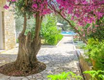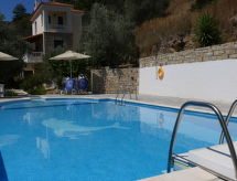 Belle résidence confortable, individuelle "Charavgi", de 3 étages. 4 appartements dans la même entité. Dans le quartier de Kerveli, situation tranquille, ensoleillée, à 300 m de la mer, à 300 m de la plage. En commun: beau jardin entretenu avec fleurs et arbres, piscine rectangulaire (disponibilité saisonnière: 01.Avr. - 31.Oct.). Change de linge 2 fois par semaine. Changementde linge de toilette 2 fois par semaine. Nettoyage 2 fois par semaine. Place de parking près de la maison. Magasin d'alimentation 7.1 km, supermarché 7.1 km, restaurant 300 m, boulangerie 7.1 km, café 5 km, plage de graviers "Kerveli" 300 m, centre de plongée 800 m. Centre équestre 9.2 km. Attractions à proximité: Samos Wine Museum 10 km, Archaeological Museum of Samos 10.9 km, Natural History Museum of Aegean 16.9 km, Archaeological Museum of Pythagorion 15.4 km, Pythagoras Caves 55.5 km. Veuillez noter: voiture recommandée. Équipement pour bébés sur demande (inclus). Groupes de jeunes sur demande seulement.Interior