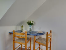 Studio 2 pièces sur 2 niveaux. Spacieux et clair, aménagement confortable et de bon goût: cuisine (4 plaques de cuisson, four, four micro-ondes, congélateur) avec table pour les repas, radio. À l'étage supérieur: séjour/chambre à coucher avec 1 lit double et TV (écran plat), DVD. Douche/WC. Chauffage. Meubles de terrasse. A disposition: lave-linge, sèche-linge. Veuillez noter: maison non-fumeur.- Installations