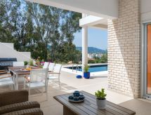 Belle villa moderne, individuelle "Hill Top", de 2 étages, environnée par les arbres et champs. Dans le quartier de Pastida, à 4.9 km du centre de Kremasti, situation tranquille, ensoleillée sur une colline, à 5.8 km de la mer, à 5.8 km de la plage. A usage privé: beau jardin entretenu avec fleurs et arbres, piscine rectangulaire (36 m2, profondeur 150 cm, disponibilité saisonnière: 01.Avr. - 30.Nov.) avec marches intérieures. Barbecue, place de parking près de la maison. Magasin d'alimentation 1.1 km, supermarché 1.1 km, restaurant 1.1 km, bar 1.1 km, boulangerie 1.1 km, café 1.1 km, plage de graviers "Kremasti" 5.8 km. Terrain de golf (18 trous) 14.5 km, centre équestre 5.5 km. Attractions à proximité: Valley of the Butterflies 15 km, Lindos Acropolis 45.7 km, Bee Museum 3 km, Palace of the Grand Master of Knights 16.7 km, Medieval City of Rhodes 14.6 km, CAIR Wine Museum 18.7 km. Veuillez noter: voiture recommandée. Adapté(e) aux familles, équipement pour bébés sur demande (inclus). Groupes de jeunes sur demande seulement.Interior