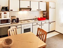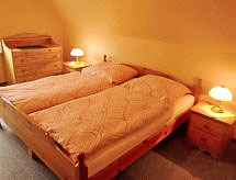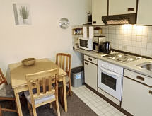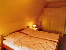 Apt 3 pièces 50 m2, à l'étage supérieur. Aménagement de bon goût et plaisant: séjour/salle à manger 17 m2 avec TV (satellite) (écran plat). 1 chambre 14 m2 avec 1 lit double (2 x 90 cm, longueur 190 cm), lavabo. Sortie sur le balcon. 1 chambre 10 m2 avec 1 lit double (2 x 90 cm, longueur 190 cm). Cuisine ouverte (4 plaques de cuisson, four, four micro-ondes, cafetière électrique). Douche/WC. Petit balcon, terrasse. Meubles de terrasse, mobilier de balcon, barbecue. A disposition: chaise haute pour enfant. Internet (Connexion WIFI, gratuit). Veuillez noter: logement non-fumeur. Détecteur de fumée.- Installations