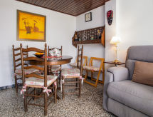 Petite résidence "Hipocampo". Dans la localité, à 500 m du centre de Dénia, à 50 m de la mer, à 50 m de la plage. En commun: douche extérieure, place de parking sur le terrain. Magasins, supermarché 50 m, restaurant, bar, zone piétonne, arrêt du bus 10 m, plage de sable 50 m. Port plaisance 500 m, marina 1 km, ecole de surf 200 m. Veuillez noter: sans ascenseur.Interior