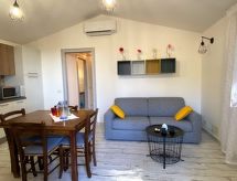Maison 2 pièces 40 m2, au rez-de-chaussée. Clair, rénovée en 2021, aménagement agréable et moderne: séjour/chambre à coucher avec 1 divan-lit double, Télévision numérique et poêle à bois. Sortie sur le jardin, sur la terrasse. 1 chambre double. Coin cuisine (lave-vaisselle, 4 plaques à induction, grille-pain, bouilloire électrique, four micro-ondes, congélateur, cafetière électrique). Douche/bidet/WC. Chauffage électrique, air-conditionné. Petit jardinet. Meubles de terrasse, barbecue, chaises longues (2). Belle vue sur les alentours. A disposition: lave-linge, moustiquaire, lit bébé jusqu'à 2 ans, sèche-cheveux. Internet (Connexion WIFI, gratuit).- Installations