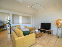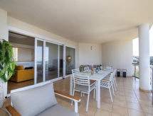 "Hoyo 19", apt 3 pièces 142 m2 au 1er étage. Spacieux et clair, aménagement confortable et agréable: séjour/salle à manger ouvert avec Télévision numérique, air-conditionné et chauffage à air chaud. Sortie sur la terrasse. 1 chambre avec 1 grand-lit (1 x 150 cm, longueur 190 cm), bain/WC, double vasque, air-conditionné et chauffage à air chaud. Sortie sur la terrasse. 1 chambre avec 1 lit double (135 cm, longueur 190 cm), air-conditionné et chauffage à air chaud. Cuisine ouverte (four, 3 plaques à induction, grille-pain, bouilloire électrique, four micro-ondes, cafetière électrique). Douche/WC. Grande terrasse. Meubles de terrasse. Vue panoramique sur la mer et la localité. A disposition: lave-linge, sèche-linge, fer à repasser, moustiquaire, chaise haute pour enfant, lit bébé jusqu'à 2 ans, sèche-cheveux. Internet (Connexion WIFI, gratuit). Veuillez noter: maison non-fumeur. R000000001- Caractéristiques de l'hébergement