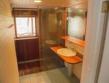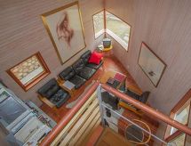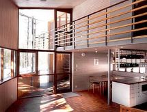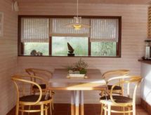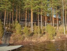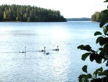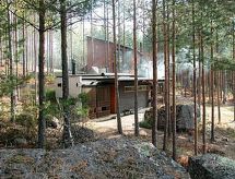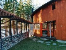 35 km au nord de Kouvola, L.Siikajärvi 25 m (longueur 2 km, largeur 1 km), peu profond, fond sablonneux/argileux dur, propre bateau. Villa bois/pierre de 2002 sur deux niveaux, cuisine, séjour (60 m²), 2 chambres avec 1 lit dans chacune, chambre avec lit pour 2 personnes, bibliothèque, salle d'eau, véranda ouverte. Bâtiment séparé du sauna (35 m²) avec salle d'eau, salle avec cheminée, sauna à bois et poele élec., sauna a lumière élec., douche, WC et chauffage géothermique. Le sauna a également une piscine extérieure (électrique, incluse dans le prix), voir photos. "Villa Hiljaisuus (Silence)", conçue par l'architecte de renommée mondiale Juhani Pallasmaa, diffère des chalets conventionnels et offre calme et tranquillité. Les choses que vous cherchez, vous cherchent aussi, bienvenue ! Les bâtiments représentent une architecture moderne, qui permet à la nature de "passer" par les fenêtres à l'intérieur des bâtiments. La fenêtre voûtée de 20 mètres de la villa s'ouvre sur un paysage unique avec une belle vue sur le lac. Le bâtiment est entouré d'une forêt de pins aux allures de parc qui crée également sa propre atmosphère. Villa Silence est une expérience qui restera gravée dans votre mémoire ! Musée de l'usine Verla à 12 km, centre d'art Salmela à 50 km. Notez ! Le nettoyage final de séjour et le linge de lit seront ajoutés à toutes les réservations.- Installations