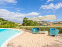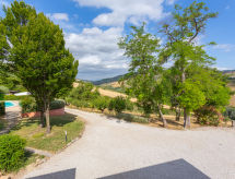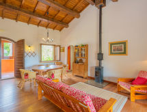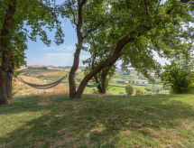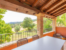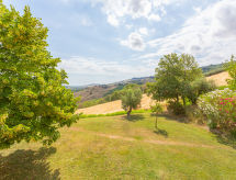 Beau cottage "I Due Carpini", environné par les arbres et champs. 3 appartements dans la résidence. À 5 km du centre de Città Sant'Angelo, à 25 km du centre de Pescara, à 20 km du centre de Pineto, situation isolée sur un versant, à 12 km de la mer. En commun: terrain 2'000 m2, grand jardin (pas clôturé) avec plantes et arbres, champ, verger, piscine (15 x 6 m, profondeur 120 - 250 cm, disponibilité saisonnière: 01.Jun. - 30.Sep.) avec eau de mer. Douche extérieure, meubles de jardin, barbecue. Infrastructures de la Maison: lave-linge (en sus). Accès en voiture par un chemin raide, étroite de 900 m de long. En hiver, merci de prévoir des chaînes, en hiver 4x4 recommandé. Place de parking sur le terrain. Supermarché 3 km, gare ferroviaire "Pescara" 25 km, plage de sable "Montesilvano" 12 km.Interior