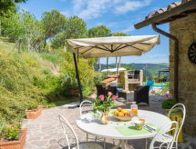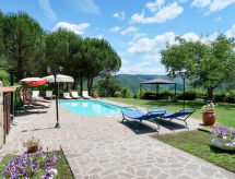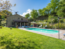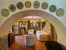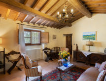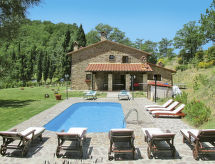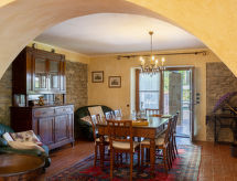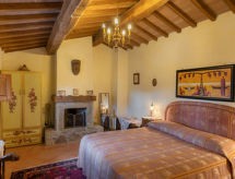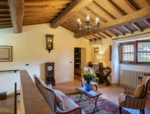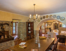 À 8 km de Arezzo: Maison rustique, individuelle "Podere Il Castello", 650 m au dessus du niveau de la mer, de 2 étages, rénovée en 2006. À 8 km du centre d'Arezzo, à 4.5 km du centre d'Antria, situation isolée, dans la verdure. A usage privé: terrain 4 ha (clôturé), jardin sur plusieurs niveaux avec arbres, jardin naturel, champ, piscine (9 x 4 m, profondeur 120 - 150 cm, disponibilité saisonnière: 29.Avr. - 30.Sep.). Douche extérieure, ping-pong, basket, terrain de pétanque, volley ball, tonnelle, barbecue, espace de jeux pour les enfants. Débarras disponible. Accès en voiture (800 m chemin non goudronné). Place de parking (pour 4 voitures, couvert) sur le terrain. Magasin d'alimentation 4.5 km, supermarché 6.5 km, gare ferroviaire "Arezzo" 10 km.Interior