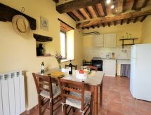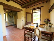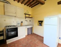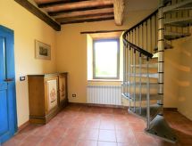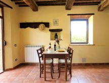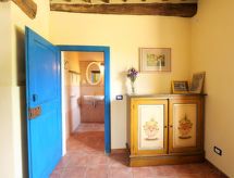 Maison de campagne individuelle "I Prati di Travale", de 2 étages, environnée par les arbres, prés et champs. 4 appartements dans la résidence. À 1 km du centre de Travale, à 6 km du centre de Montieri, à 45 km du centre de Siena, à 45 km de la mer. En commun: terrain à l'état naturel 3'000 m2, arbres, champ, piscine (12 x 6 m, profondeur 140 cm, disponibilité saisonnière: 15.Mai. - 15.Sep. horaires d'ouverture de la piscine: 09:00-20:00). Douche extérieure, jardinet, entretien de la piscine par le propriétaire/jardinier. Infrastructures de la Maison: lave-linge (en commun, en sus). Accès en voiture par un chemin difficile de 400 m de long. Place de parking sur le terrain. Magasins 1 km, supermarché 6 km, location de bicyclettes 5 km, parc "Cornate e Fosini" 12 km, baignade en lac "Accesa" 19 km. Centre équestre 5 km, chemins de randonnées pédestres depuis la maison 10 m. Attractions à proximité: Giardino dei Suoni 19 km, Abbazia di San Galgano 20 km, Dream Wood - Artistic park 30 km. Les lacs connus sont facilement accessibles: Accesa 35 km. Région de randonnées: Mountain-bike 3 km. Vente locale de produits de la ferme. Veuillez noter: animaux dans le voisinage. Les prix incluent une consommation limitée d'électricité.Interior