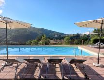 "Il Forno", maison mitoyenne 2 pièces 70 m2 sur 2 niveaux. Aménagement simple et rustique: cuisine (four, 4 feux, grille-pain, cafetière électrique) avec table pour les repas. Sortie sur le jardinet. Douche/bidet/WC. À l'étage supérieur: (escalier en colimaçon) 2 chambres doubles. Chauffage au gaz. Sol en pierres naturelles. Jardinet. Meubles de terrasse, barbecue. A disposition: chaise haute pour enfant, lit bébé jusqu'à 2 ans. Internet (Connexion WIFI, gratuit). Veuillez noter: logement non-fumeur. Maximum 1 animal/ chien autorisé. Entrée privée.- Installations
