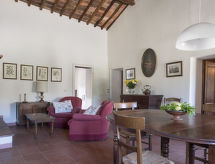 Rustico "Il Laghetto". À 4 km du centre de Pergine Valdarno, à 25 km du centre d'Arezzo, à 35 km du centre de Siena, situation tranquille. A usage privé: terrain, arbres, jardin naturel, champ, piscine (hors sol) (8 x 4 m, disponibilité saisonnière: 15.Mai. - 01.Oct.). Ping-pong. Accès en voiture (2.9 km chemin non goudronné). Place de parking sur le terrain. Magasins 4 km, supermarché 5 km, gare ferroviaire "Laterina" 3 km. Attractions à proximité: Castello di Montozzi reception (Wi-fi) 1.8 km. Vente locale de produits de la ferme.Interior