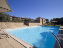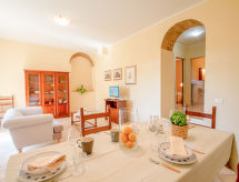 Cette ancienne ferme en pierre, récemment restaurée, se situe dans une grande exploitation agricole en activité, complètement clôturée, à 30 km de Siene et à 60 km de Florence, au coeur de Chianti. Dans le corps central de la maison, il a été aménagé 9 appartements en veillant à respecter les caractéristiques architecturales d'origine, dont les plafonds aux poutres apparentes et les sols typiques en "cotto" toscan. Belles promenades à faire à pied ou à bicyclette dans les environs ou sur les rives de 2 grands lacs qui font partie du domaine. Pêche à la ligne. Grand pavillon de jardin. Salle de dégustation avec dîners et possibilité d'organiser des réceptions et des mariages. Possibilité d'acheter les produits de la ferme: huile, vin Chianti et Colli Senesi, fromages ect. Chaque appartement dispose d'une partie extérieure meublée. Ancienne ferme accueillante pour les enfants, simple, confortable du 18ème siècle, rénovée, environnée par les arbres et champs. À 9 km du centre de Colle Val d'Elsa, à 3 km du centre de Casole d'Elsa, à 20 km du centre de San Gimignano, situation tranquille sur un versant, dans la verdure. En commun: terrain, piscine (7 x 15 m, profondeur 120 - 160 cm, disponibilité saisonnière: 08.Mai. - 02.Oct.) avec marches intérieures. Douche extérieure, barbecue. Infrastructures de la résidence: réception, chauffage central, lave-linge (en commun, en sus), chauffage payable localement (01.11. - 15.04.), possibilité de chauffage uniquement du 01.11. au 15.04.. Nettoyage possible (en sus). Place de parking près de la maison sur le terrain. Magasins 3 km, magasin d'alimentation 3 km, supermarché 9 km, restaurant 3 km, gare ferroviaire "Poggibonsi" 20 km. Tennis 15 km, centre équestre 15 km. Veuillez noter: voiture recommandée. La photo ne montre qu’un exemple de location de vacances. D’autres appartements sont également proposés à la location dans cette maison de vacances.Interior