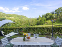 Maison jumelée 5 pièces 150 m2 sur 3 niveaux, au rez-de-chaussée. Rénovée en 2012, aménagement confortable et de bon goût: entrée. Grand séjour ouvert avec cheminée et TV. Sortie sur le jardin, sur la loggia. Salle à manger, sans fenêtre. Coin cuisine (6 plaques de cuisson, four, lave-vaisselle, congélateur, cafetière électrique, four à pizza). À l'étage supérieur: 1 chambre double avec cheminée et douche/bidet/WC. 2ème étage: 1 chambre double avec cheminée et douche/bidet/WC. Chambre avec passage avec 1 grand-lit (160 cm, longueur 200 cm), cheminée et douche/bidet/WC. 1 petite chambre, sans armoire avec 2 lits. Chauffage au bois. Vue panoramique sur les alentours. A disposition: lave-linge. Internet (Connexion WIFI, gratuit). 1 animal/ chien autorisé.- Installations