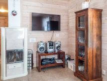 A 40 km au nord-est de Kolari, à 3 km d'Ylläsjärvi et à 4,5 km de la plage de baignade. Appartement duplex en rondins, construction 2009. Séjour / cuisine, trois chambres (deux avec 2 lits séparés et une avec un lit double), deux lits supplémentaires, sauna électrique, douche, WC séparé. En plus: chauffe-eau, grille-pain, télévision écran plat, chaîne hi-fi, équipement karaoké, possibilité de regarder les chaînes satellite avec votre propre digibox et carte. Lit bébé et chaise d'alimentation. Appartement duplex accueillant dans le village d'Ylläsjärvi, région d'Iso-Ylläs (Vanamopolku 3). Emplacement particulièrement idéal pour les sports d'hiver car il est à proximité des pistes de ski et de motoneige. Les animaux domestiques ne sont pas autorises. Extra: Local d'entretien des skis chauffé, chambre d'hôtes dans la cour avec espace pour trois personnes. Renseignez-vous sur les possibilités de location de la maison de jardin d'Ylläs Travel.- Installations