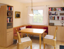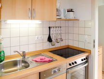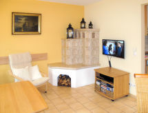 Maison jumelée 3 pièces 56 m2 sur 2 niveaux. Aménagement de style et plaisant: séjour/salle à manger avec table pour les repas, TV (satellite), radio et DVD. Sortie sur la terrasse. Petite cuisine ouverte (four, lave-vaisselle, 4 plaques vitrocéramiques, grille-pain, bouilloire électrique, four micro-ondes, cafetière électrique). Douche/WC. À l'étage supérieur: 1 chambre, mansardée avec 1 lit double. 1 chambre, mansardée avec 2 lits (80 cm, longueur 190 cm), TV (satellite). WC séparé. Chauffage électrique. Terrasse. Meubles de terrasse. A disposition: lave-linge, chaise haute pour enfant, lit bébé. Internet (Connexion WIFI, gratuit). Veuillez noter: maison non-fumeur. Maximum 1 animal/ chien autorisé. Détecteur de fumée.- Installations