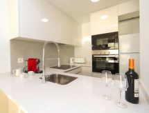 Belle petite résidence moderne "Isea Calpe", de 8 étages, année de construction 2019. Au centre de Calpe, situation ensoleillée, au cœur de la ville, à 100 m de la mer, à 100 m de la plage. En commun: terrain (clôturé), jardin sur plusieurs niveaux avec plantes et fleurs, piscine cloturée (12 x 8 m, profondeur 40 - 165 cm, disponibilité saisonnière: 01.Jan. - 31.Dec.). Piscine de forme irrégulière. WC dans l'espace piscine, bassin pour les enfants, douche extérieure, ping-pong, espace de jeux pour les enfants. Infrastructures de la Maison: ascenseur. Magasins 100 m, supermarché 180 m, restaurant 30 m, bar, café 100 m, plage de sable "Playa Arenal" 130 m. Port plaisance 2.2 km, marina 2.2 km, terrain de golf 10 km. Attractions à proximité: Aqualandia, Mundomar, Terra Mítica, Terra Natura, Benidorm Palace (Benidorm), Fonts de l'Algar, Castillo de Guadalest.Interior