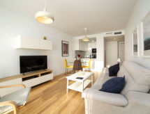 "Isea Calpe 02", apt 2 pièces 50 m2. Spacieux et clair, aménagement confortable et moderne: séjour/salle à manger avec 1 divan-lit double, coin repas, Télévision numérique, air-conditionné et chauffage à air chaud. Sortie sur la terrasse. 1 chambre avec 1 grand-lit (150 cm, longueur 190 cm), air-conditionné et chauffage à air chaud. Cuisine ouverte (four, lave-vaisselle, 3 plaques vitrocéramiques, four micro-ondes, cafetière électrique) avec air-conditionné et chauffage à air chaud. Douche/WC. Chauffage électrique. Possibilité de chauffage uniquement du 01.11. au 30.04. Terrasse. Meubles de terrasse. Vue panoramique sur la mer. A disposition: lave-linge, fer à repasser, chaise haute pour enfant, lit bébé jusqu'à 2 ans, sèche-cheveux. Internet (Connexion WIFI, gratuit). Place de parking No 37 (cloturée). Veuillez noter: adapté(e) aux familles. Maison non-fumeur. AT-481463-A- Installations