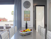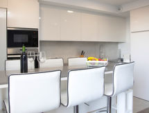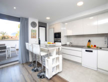 Belle petite résidence moderne "Isea Calpe", de 8 étages, année de construction 2019. Au centre de Calpe, situation ensoleillée, au cœur de la ville, à 100 m de la mer, à 100 m de la plage. En commun: terrain (clôturé), jardin sur plusieurs niveaux avec plantes et fleurs, piscine cloturée (12 x 8 m, profondeur 40 - 165 cm, disponibilité saisonnière: 01.Jan. - 31.Dec.). Piscine de forme irrégulière. WC dans l'espace piscine, bassin pour les enfants, douche extérieure, ping-pong, espace de jeux pour les enfants. Infrastructures de la Maison: ascenseur. Magasins 100 m, supermarché 180 m, restaurant 30 m, bar, café 100 m, plage de sable "Playa Arenal" 130 m. Port plaisance 2.2 km, marina 2.2 km, terrain de golf 10 km. Attractions à proximité: Aqualandia, Mundomar, Terra Mítica, Terra Natura, Benidorm Palace (Benidorm), Fonts de l'Algar, Castillo de Guadalest.Interior