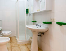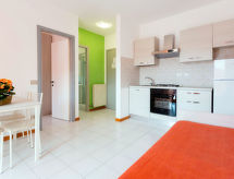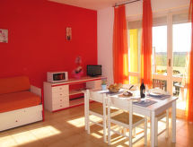 "Italia", apt 2 pièces 38 à 45 m2, à l'étage supérieur. Aménagement fonctionnel: séjour/chambre à coucher avec 1 divan-lit double, table pour les repas et TV (satellite). Sortie sur le balcon. 1 chambre avec 1 grand-lit (160 cm). Cuisine ouverte (four, Poêle à gaz, 4 feux). Douche/WC. Chauffage, air-conditionné. Balcon. Mobilier de balcon. A disposition: chaise haute pour enfant, lit bébé jusqu'à 2 ans. Internet (Connexion WIFI, gratuit). Place de parking (1 Voiture). Veuillez noter: logement non-fumeur. 1 animal/ chien autorisé.- Caractéristiques de l'hébergement