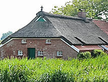 Maison jumelée rustique, historique "Itzendorfer Rott", année de construction 1834, environnée par les prés et champs. En bordure de la localité, à 2.5 km du centre, situation tranquille, à 50 m de la mer, à 2.5 km de la plage, dans la verdure. Infrastructures de la Maison: chauffage central. Place de parking près de la maison. Supermarché 3.5 km, restaurant 500 m, boulangerie 2.5 km, café 100 m, gare ferroviaire "Norddeich Mole" 3.5 km, ferry 3.5 km, plage de sable 2.5 km, piscine 14 km, piscine couverte 2.5 km. Terrain de golf (9 trous) 8 km, ecole de surf 2.5 km, tennis 4 km. La maison de vacances est une ferme typique avec un toit couvert partiellement de chaume.Interior