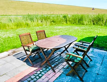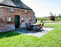 Maison jumelée 3 pièces 80 m2, au rez-de-chaussée. Aménagement de bon goût et plaisant: grand séjour/salle à manger 45 m2, ouvert avec TV (satellite) (écran plat), radio et lecteur CD. 1 chambre 9 m2 avec 1 grand-lit. 1 chambre 10 m2 avec 2 lits. Coin cuisine (four, grille-pain, bouilloire électrique, cafetière électrique). Douche/WC. Terrasse. Meubles de terrasse, réduit. A disposition: lave-linge, chaise haute pour enfant (en sus), sèche-cheveux. Internet (Connexion WIFI, gratuit). Veuillez noter: maison non-fumeur. Maximum 1 animal/ chien autorisé. Sans faux plafond. Bien restauré les poutres originaux visible. Belle vue sur le paysage et le digue.- Installations