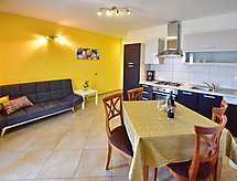 Tuliševica à 5 km de Lovran: Immeuble "Laurus". Dans le haut de la station de Lovran, dans le hameau de Tuliševica, à 8 km du centre d'Opatija, situation tranquille, ensoleillée sur un versant, à 6 km de la mer, à 6 km de la plage, dans une impasse, dans la verdure. En commun: terrain 1'100 m2, pelouse 200 m2, arbres, piscine ronde (4 m diamètre, profondeur 120 cm, disponibilité saisonnière: 01.Mai. - 15.Oct.). Terrasse (30 m2), meubles de jardin, barbecue, espace de jeux pour les enfants (toboggan, balançoire). Infrastructures de la Maison: accès internet, chauffage central (en sus). Place de parking près de la maison sur le terrain. Magasins 500 m, restaurant 1 km, plage de graviers 6 km, plage de rochers 6 km, plage aménagée 6 km. Tennis 6 km.Interior